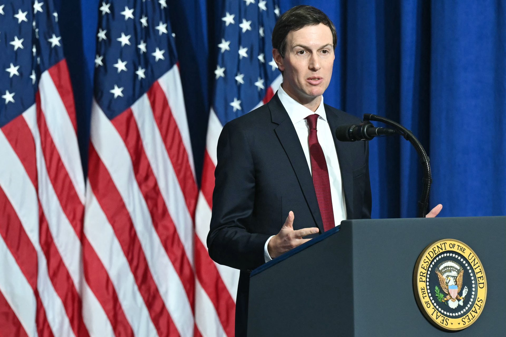 Jared Kushner a Béketanács ülésén / fotó: SAUL LOEB / AFP