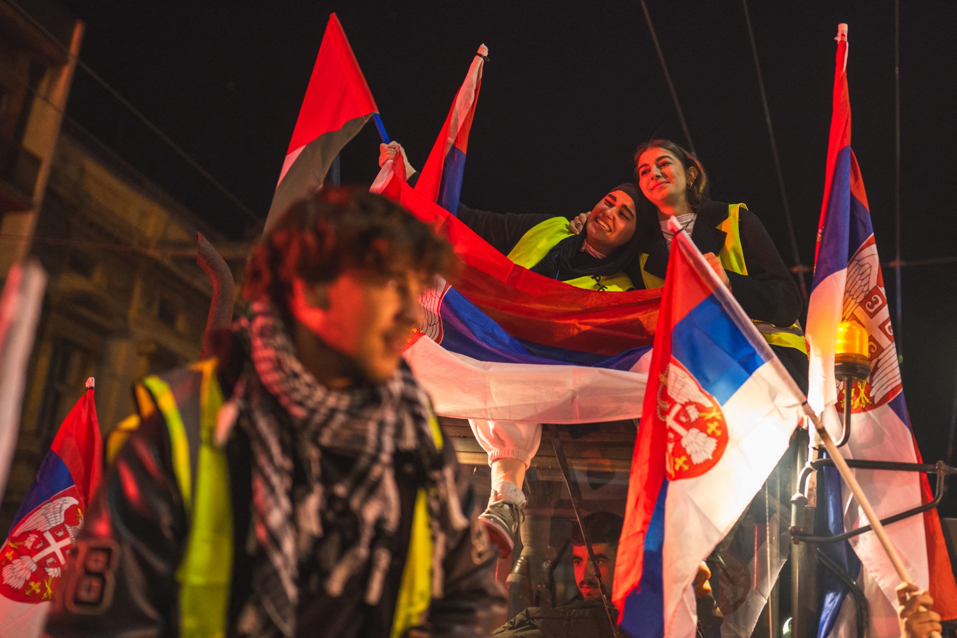 Az egy éve tartó utcai zavargások Újvidéken kezdődtek, ahol tavaly november elsején leszakadt a vasútállomás előtetője, ami 16 ember halálát okozta. Két miniszter és több állami bürokrata előzetes letartóztatására került sor, akiket a tragédiához vezető, korrupciós elemeket tartalmazó bűncselekményekkel gyanúsít az ügyészség.