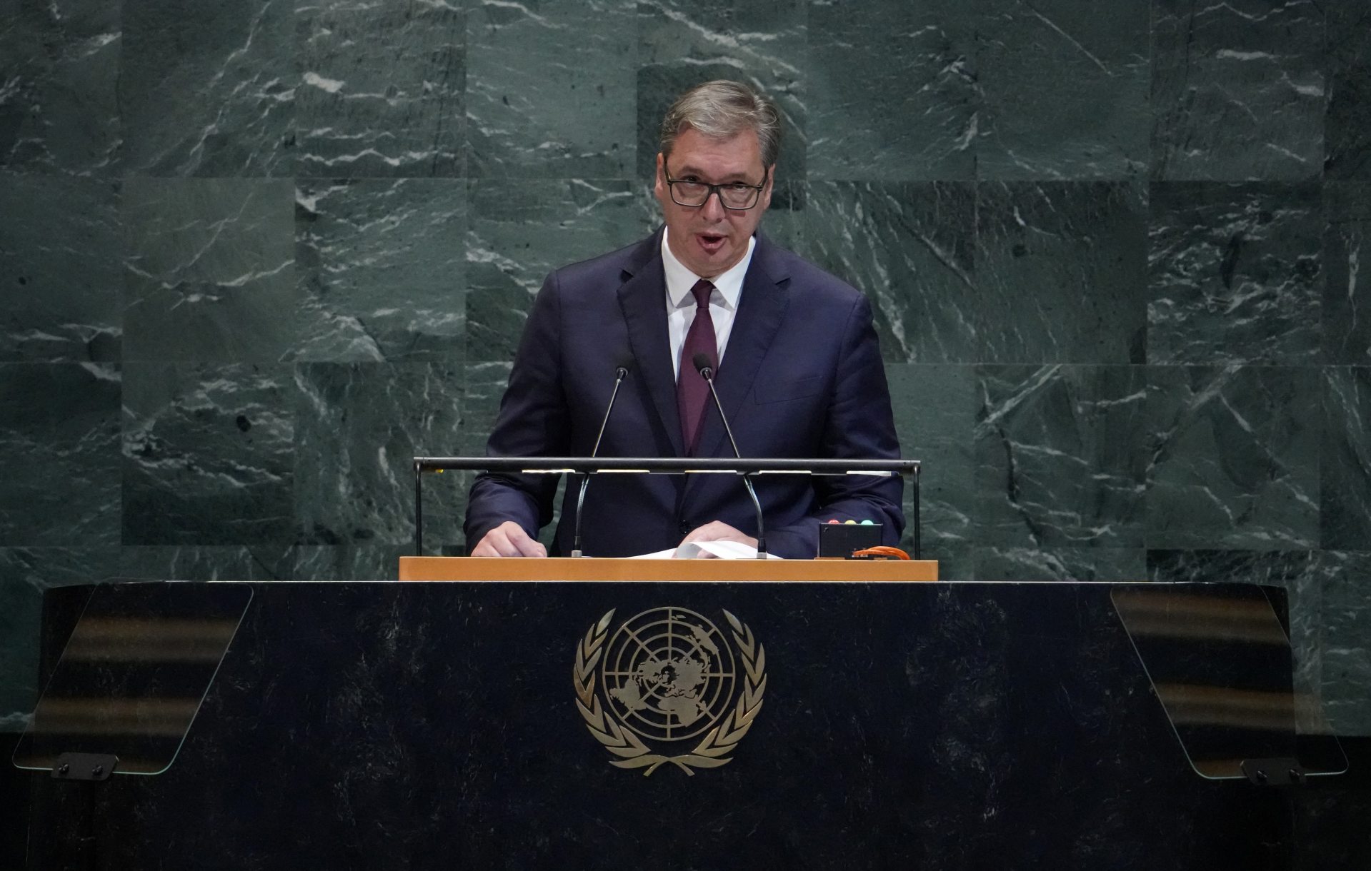 Borítókép: Aleksandar Vučić szerb elnök az ENSZ-közgyűlésben / fotó: TIMOTHY A. CLARY / AFP