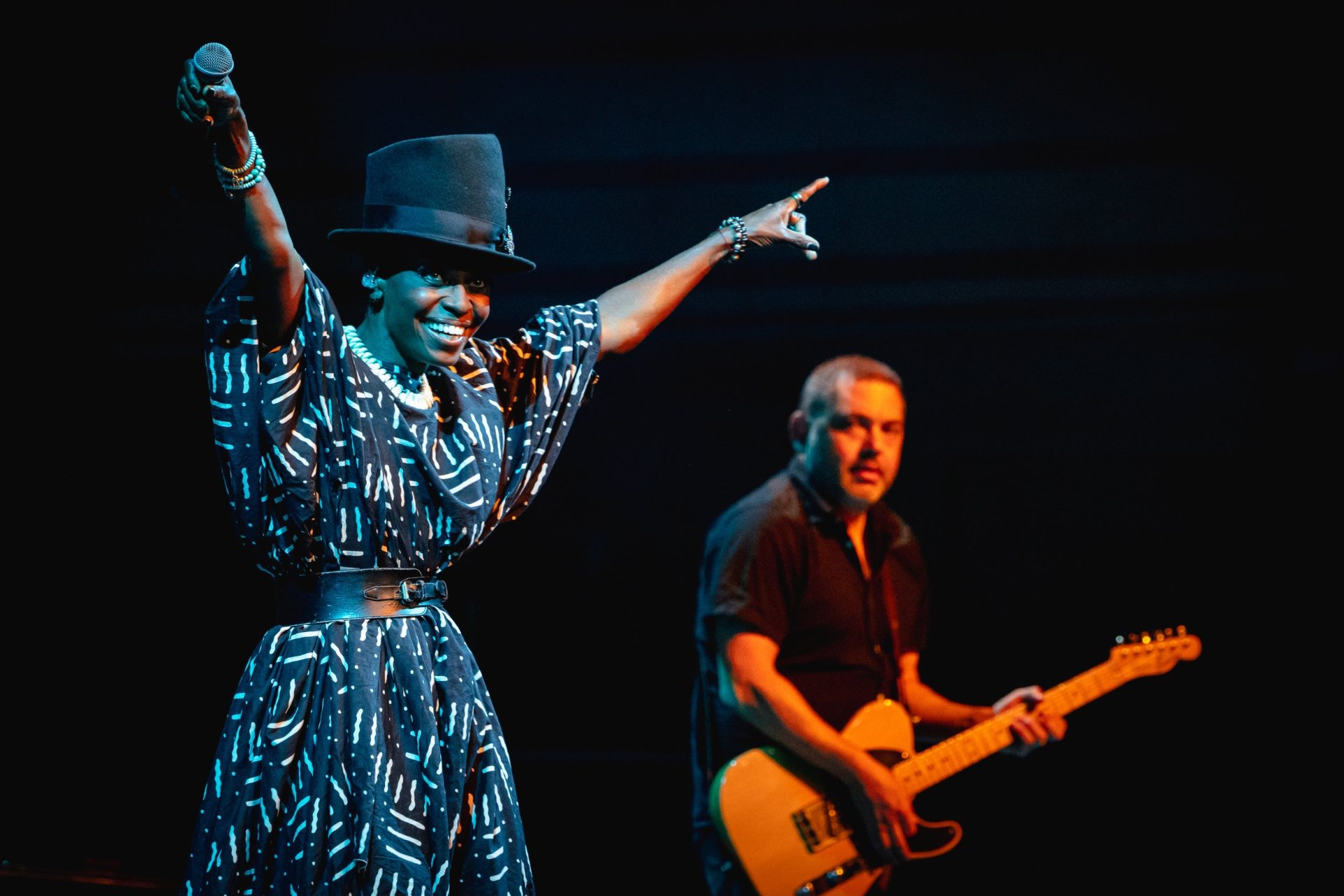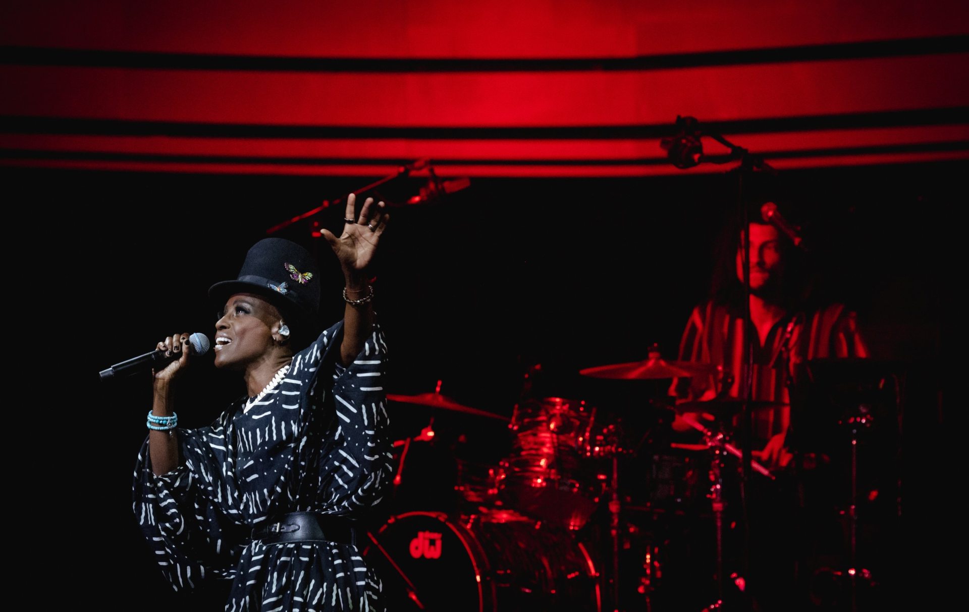 Visszatérve a Müpába. Skye Edwards, a fekete madárkaként ide oda repkedő kalapos énekes természetes eleganciával és harmincéves színpadi rutinnal, tapasztalattal csavarta ujja köré az eleinte síri csöndben ücsörgő egybegyűlteket. Valamiféle spirituális szeánszt celebrált, aminek nem volt sok mondanivalója, csak annyi, hogy nyugodjunk le. Ami egyébként mondanivalónak nem kevés. Lásd még: all you need is love.
